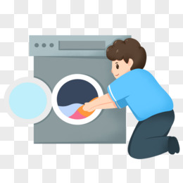 卡通手绘男孩用洗衣机洗衣服免抠素材