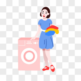 手绘插画妈妈用洗衣机洗衣服免抠素材