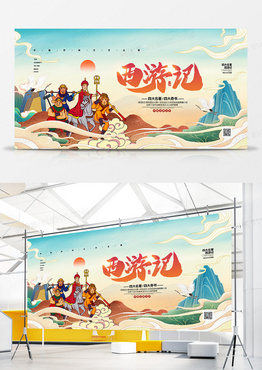 手绘国潮四大名著西游记宣传展板