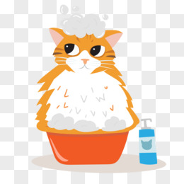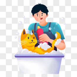 手绘卡通铲屎官给宠物猫洗澡免抠元素