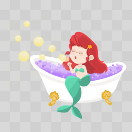 卡通手绘美人鱼吹泡泡洗澡免抠元素