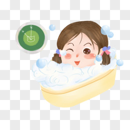 卡通手绘小女孩洗澡元素