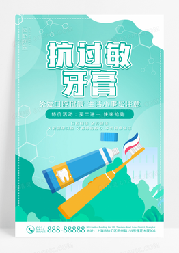 清新手绘绿色抗过敏牙膏关爱口腔健康生活小事多注意牙膏海报