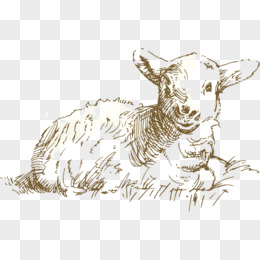 手绘水墨风黑山羊弯腰觅食免抠元素
