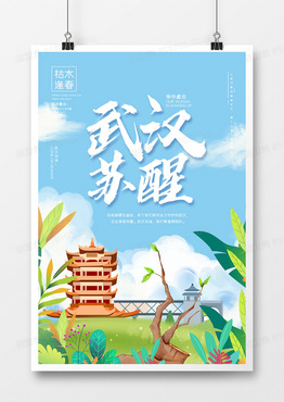 大气清新武汉苏醒主题宣传海报