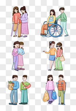 一组手绘帮助残疾人免抠元素套图