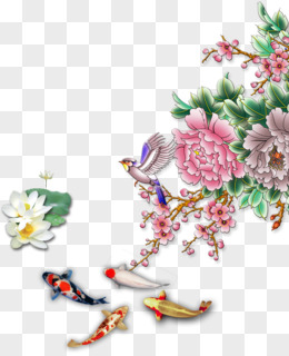 彩色插画风小朋友下水捕鱼场景免抠元素