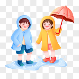 手绘卡通两个小孩踩水免抠元素