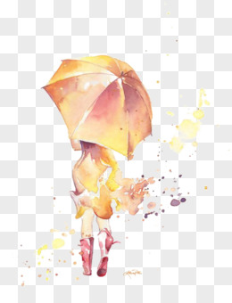 水彩绘雨伞矢量