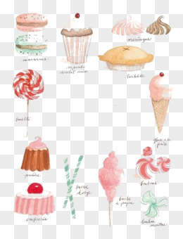 一组手绘糖果蛋糕冰淇淋简笔画素材