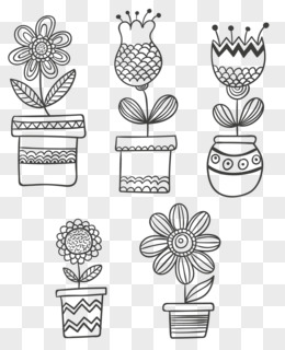 一组手绘卡通花卉局部晕染线稿免抠元素