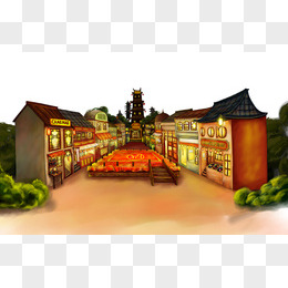手绘中国风仿古街道