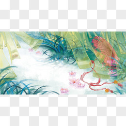 一组手绘国潮风琴棋书画山水组合合集之书法元素