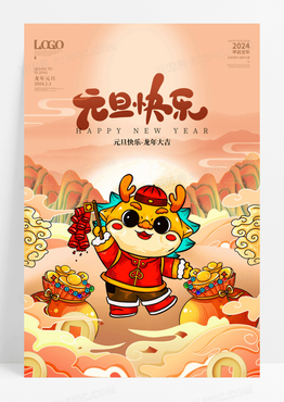 创意国潮中式2024龙年元旦新年春节主题海报2024元旦新年