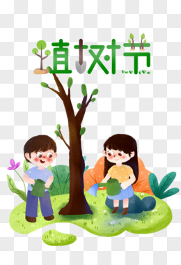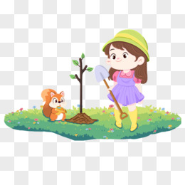 卡通手绘人物种树免抠元素