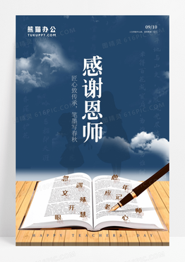 感谢恩师教师节快乐实物竹简复古风格海报设计