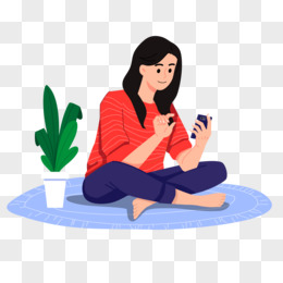 手绘卡通女孩坐着玩手机素材
