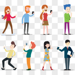 卡通手绘免抠看手机的男人素材