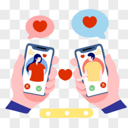 手绘卡通扁平风手机在线聊天配对相亲素材