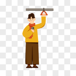 手绘卡通乘车坐地铁玩手机素材