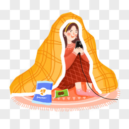 手绘卡通冬季女孩宅家玩手机插画免抠元素