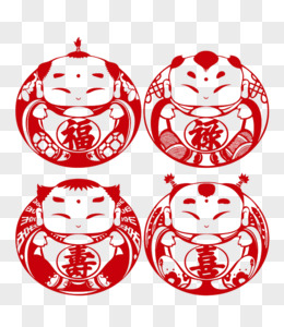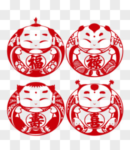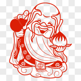 手绘红色扁平寿星公Q牌新年剪纸素材