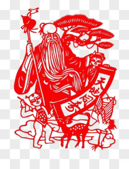 手绘福禄寿喜四大神仙之寿星剪纸素材