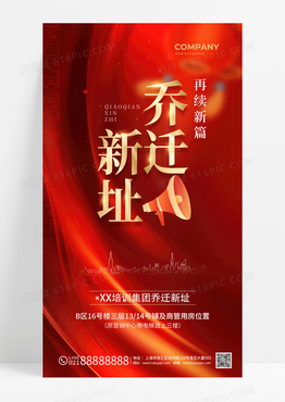 红色简约风格乔迁新址乔迁之喜宣传海报乔迁之喜手机宣传海报