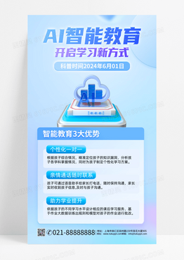 AI工具AI智能蓝色渐变海报海报设计模板手机海报
