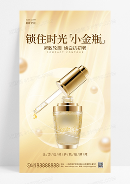 金色锁住时光美妆护肤品手机宣传海报美妆护肤品化妆品