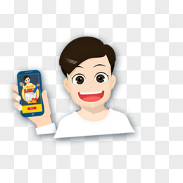 卡通扁平风男孩通过手机相亲免抠元素