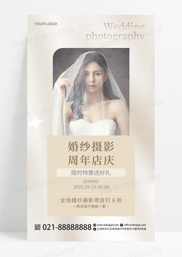 简约创意婚纱摄影周年店庆艺术照通用手机海报
