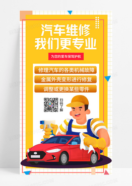 黄色卡通创意汽车维修我们更专业通用手机海报模板