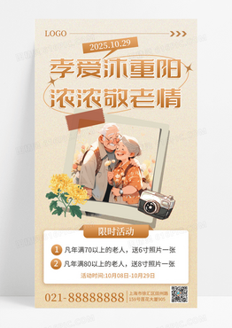 米色简约孝爱沐重阳浓浓敬老情敬老活动手机海报海报素材