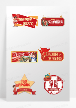 一组卡通爱国手举牌贴纸套图之欢度国庆免抠素材