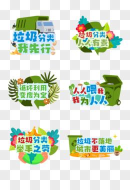一组手绘绿色垃圾分类手举牌装饰素材