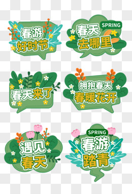 一组矢量春季春天春日拍照手举牌原创元素合集元素