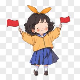 卡通红领巾少年仪仗队举旗免抠场景元素