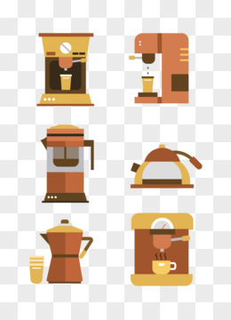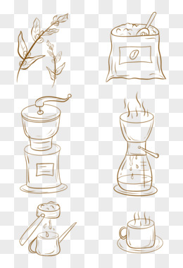 一组手绘扁平风制作咖啡的工具套图合集元素