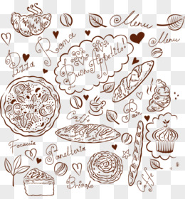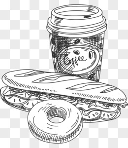 手绘快餐食物咖啡热狗甜甜圈线稿