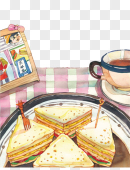 手绘咖啡早餐面包素材