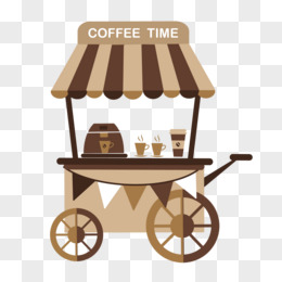 手绘咖啡小摊小推车素材