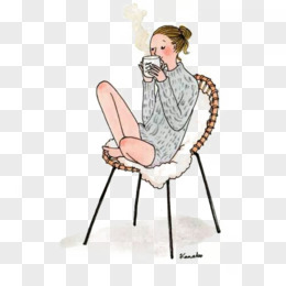 手绘可爱倒咖啡的女生插画卡通PSD素材