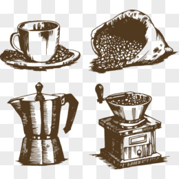 一组黑色线描磨咖啡流程图套图合集系列二素材