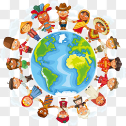 手绘卡通不同肤色的小朋友手拉手插画元素