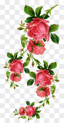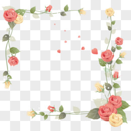 七夕情人节手绘爱心粉色玫瑰植物边框装饰