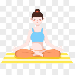 手绘少女盘坐练瑜伽免抠素材