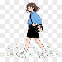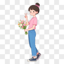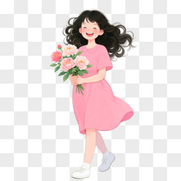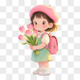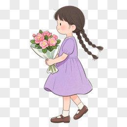 一组手绘卡通动物庆祝生日派对之河马拿鲜花素材