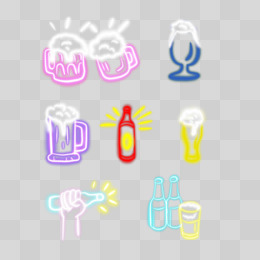 手绘霓虹灯风格啤酒免抠元素