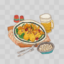 手绘夏日啤酒生蚝插画免抠元素